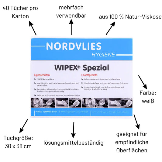 WIPEX Spezial Wisch- und Poliertücher weiß40 Tücher, 30x38 cm, Z-Falz, Natur-ViskoseNormaler Preis Von 6,49 € Von 6,49 €Normaler PreisStückpreis / pro-