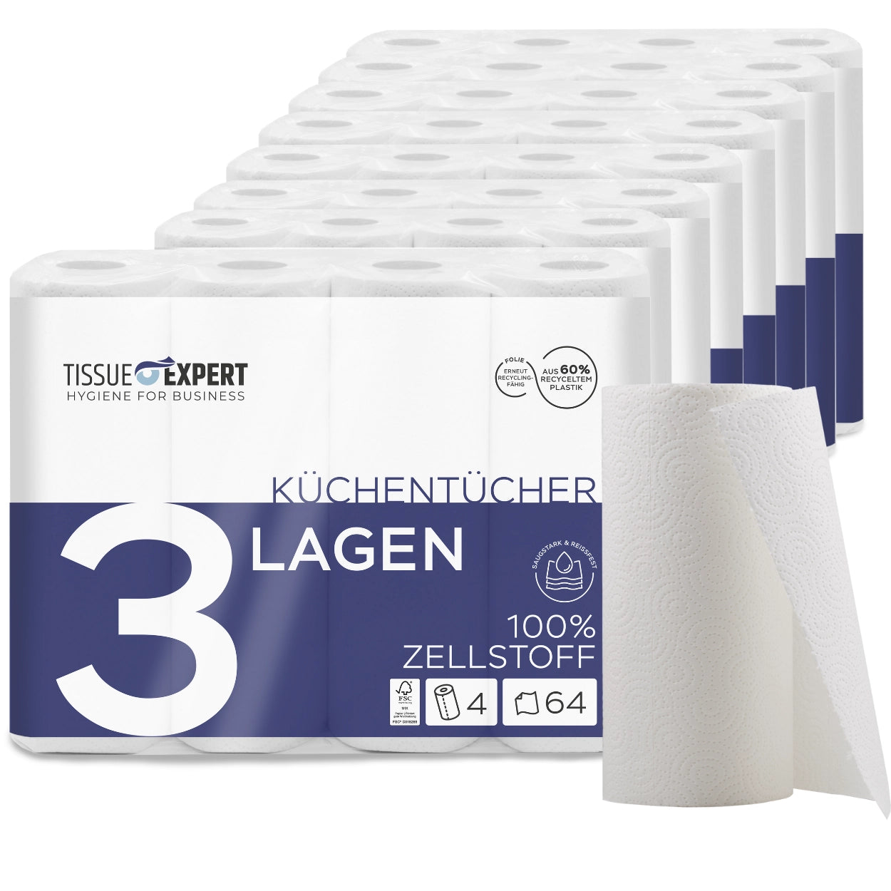 Die Tissue Expert Küchentücher verbinden hohe Qualität mit Nachhaltigkeit und bieten so eine zuverlässige Lösung für den täglichen Bedarf. Jede Rolle verfügt über 64 Blatt, die sich durch ihre Saugstärke und Reißfestigkeit auszeichnen und vielseitig einsetzbar sind – von der schnellen Reinigung bis zum Aufnehmen von Flüssigkeiten. Die Verpackungsfolie besteht zu 60 % aus recyceltem Plastik und reduziert damit den ökologischen Fußabdruck. Mit FSC-zertifiziertem Papier leisten die Küchentücher zudem einen aktiven Beitrag zum verantwortungsvollen Umgang mit Ressourcen. Dank der praktischen Großpackung ab 32 Rollen sind sie ideal für Unternehmen geeignet, die Wert auf Wirtschaftlichkeit, Qualität und Nachhaltigkeit legen.