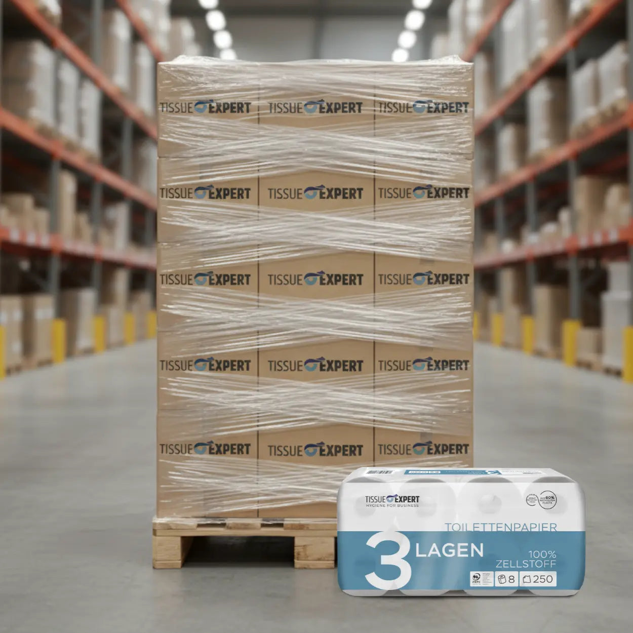 Das 3-lagige Tissue Expert Toilettenpapier steht für Premiumqualität im professionellen Bereich. Durch die drei Lagen bietet es einen spürbar weicheren und stabileren Komfort als herkömmliche Varianten. Hergestellt aus 100 % Zellstoff überzeugt es durch eine angenehme Haptik und zuverlässige Reißfestigkeit. Jede Rolle enthält 250 Blatt und ist damit besonders ergiebig, was Nachfüllintervalle deutlich reduziert. Das Toilettenpapier ist PEFC zertifiziert und garantiert eine verantwortungsvolle Herkunft des Rohstoffs. Die Verpackungsfolie besteht zu 60 Prozent aus recyceltem Kunststoff und kann nach Gebrauch wiederverwertet werden. Dieses Produkt ist ideal für Unternehmen, die Wert auf Komfort, Qualität und ein gepflegtes Erscheinungsbild in ihren Sanitärräumen legen.