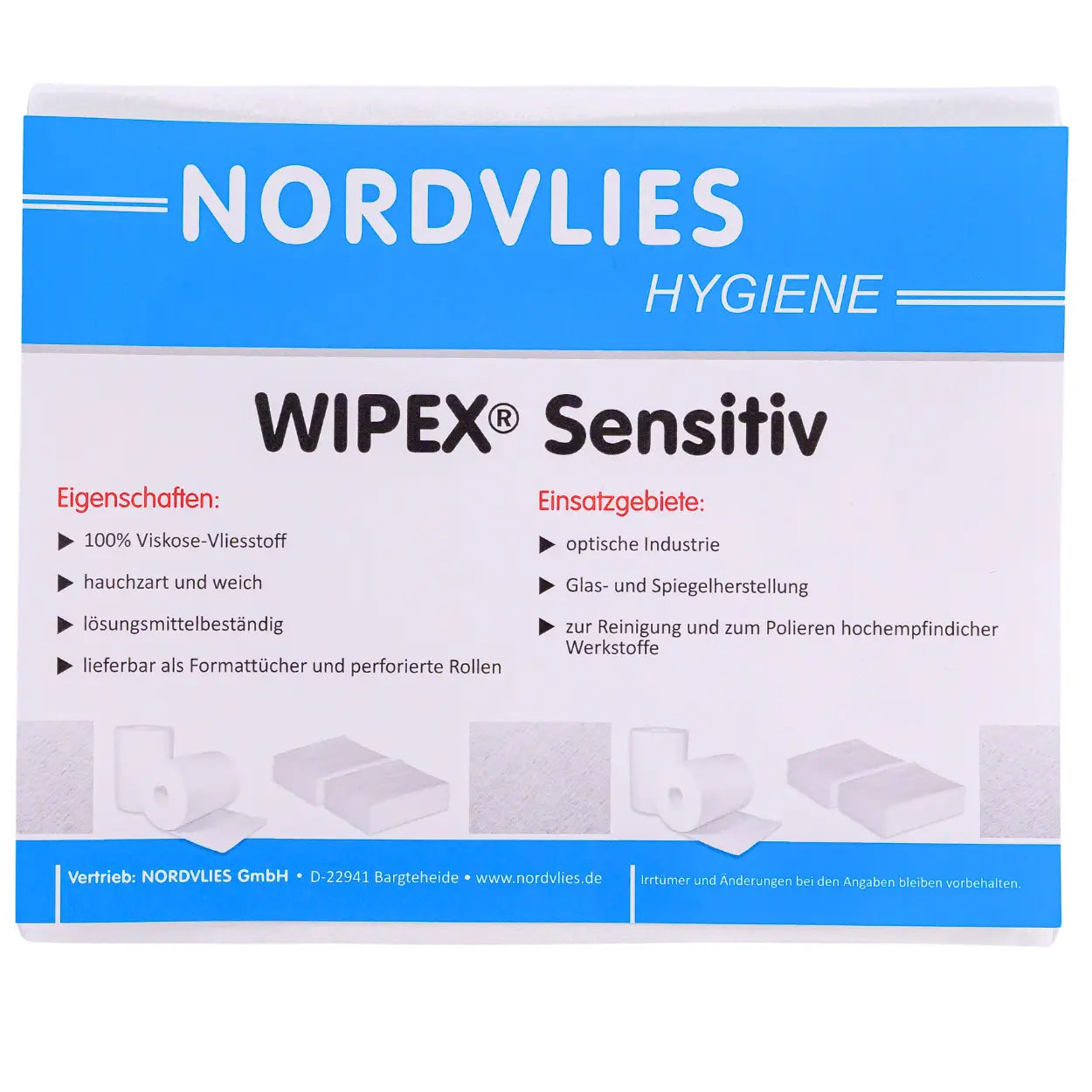 Die WIPEX Sensitiv Wisch- und Poliertücher sind besonders weich und trotzdem stark in der Leistung. Sie sind saugstark, sterilisierbar, lösungsmittelbeständig und dabei biologisch abbaubar. Hergestellt aus hochwertiger Naturviskose, sind sie ideal für den Einsatz in Kliniken und Pflegeeinrichtungen, aber auch in der Industrie, wenn es auf eine besonders schonende Reinigung ankommt – zum Beispiel bei Glas, Möbeln, empfindlichen Oberflächen oder in der Fahrzeugpflege.